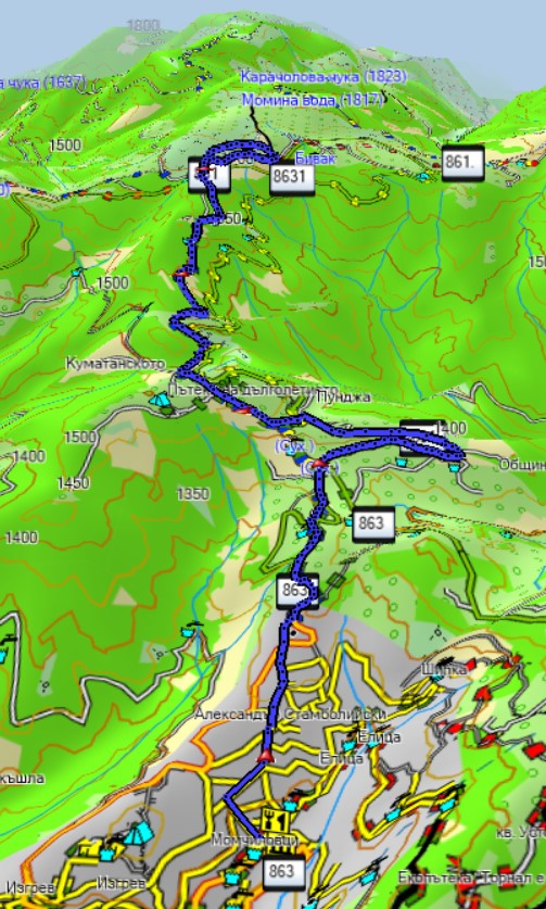 Разстояние: 7 км. – еднопосочно Сборно изкачване/спускане: +650/-130 Трудност: Умерено труден Цвят маркировка: син